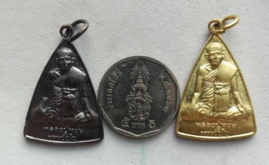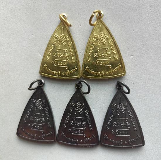 วัดใจเคาะเดียวแดงจ้า เหรียญสามเหลี่ยมหลวงปู่หงษ์ เนื้อทองเหลือง2 ทองแดงรมดำ3 รวม5เหรียญ มีรอย1เหรียญ เคาะเดียวแดงจ้า