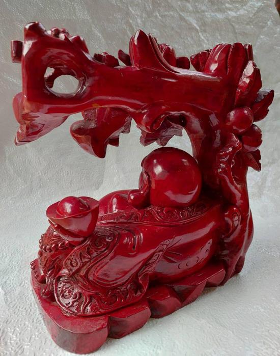 พระสังกัจจายน์ที่แกะสลักจากไม้ มีลักษณะอ้วน พุงพลุ้ย ยิ้มแย้ม ใบหน้ามีความสุข ถือเป็นสัญลักษณ์แห่งความอุดมสมบูรณ์ โภคทรัพย์ และปัญญา โดยแบกถุงทองและ/หรือถือถุงเงิน แสดงถึงความร่ำรวย เงินทองไหลมาเทมา |