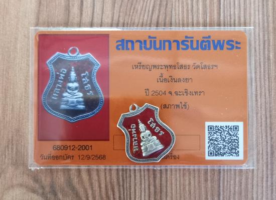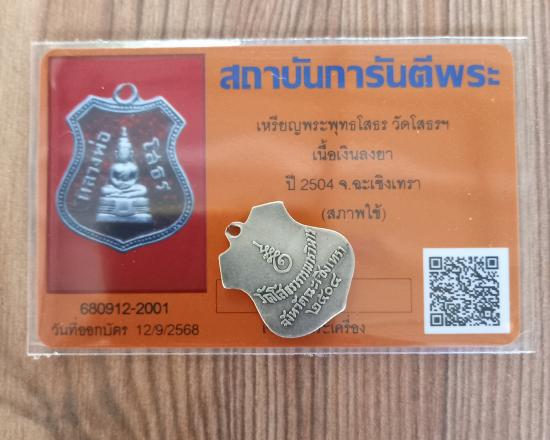 เคาะเดียวแดง++เหรียญหลวงพ่อโสธร เนื้อเงินลงยา ปี2504 มาพร้อมบัตรพระแท้สภาพใช้