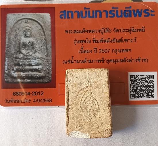 เคาะเดียวแดง++พระสมเด็จพุทโธหลังยันต์เฑาะว์ (แช่น้ำมนต์) หลวงปู่โต๊ะ วัดประดู่ฉิมพลี ปี 2507 (หน้าตาติด)+บัตรรับรองระบุสภาพ