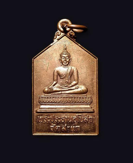 ชื่อพระเครื่อง วัดใจ...เหรียญพระประธานพระอุโบสถ เนื้อทองแดง มีรอยจาร วัดสะแก ปี2532