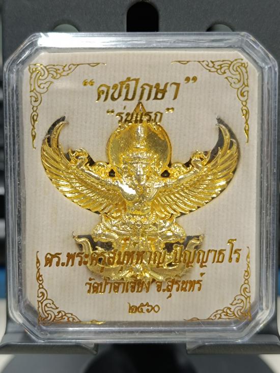 พญาเศวตโลหิต คชปักษา รุ่นแรก ปี2560 ดร.พระครูสมุห์หาญ วัดป่าอาเจียง จ.สุรินทร์ (ขนาดความสูง 3.8 ซ.ม.) เนื้อสุวรรณกาย หมายเลข 4874 |