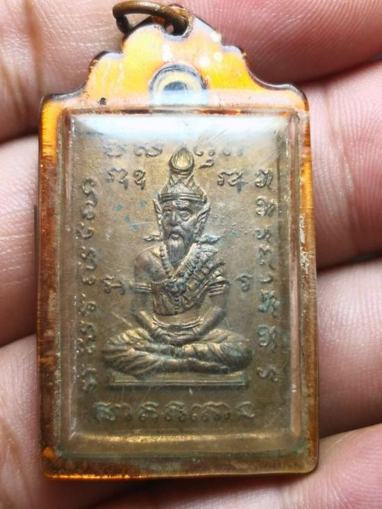 เหรียญพระพุทธ หลังพระฤาษี เนื้อทองแดง เลี่ยมเก่า ไม่ทราบที่สภาพตามรูปราคาเบาๆ |