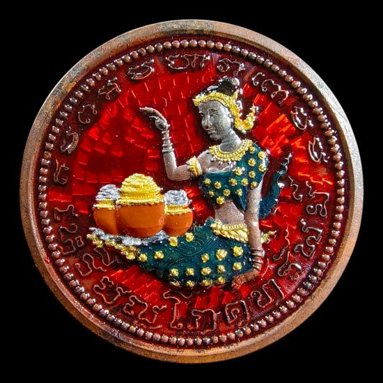 เหรียญโภคทรัพย์ เงินไหลนอง ทองไหลมา ๒๕๖๖ พระครูปลัดอนุสรณ์ (พระอาจารย์ต้อม) ปภสสโร วัดท่าสะแบง จ.ร้อยเอ็ด เนื้อสัมฤทธิ์โบราณ ลงยา หมายเลข ๑๐๙๘ พร้อมกล่องเดิม