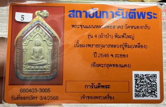 พระขุนแผนหลวงพ่อสาคร วัดหนองกรับ จ.ระยอง พิมพ์ใหญ่เนื้อเหลืองว่านดอกทองสร้างน้อยพร้อมบัตรรับรองของเวปครับ