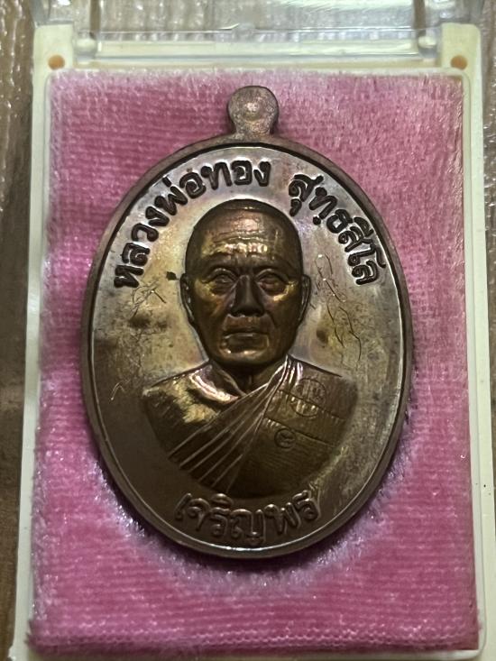 รุ่นแรกเหรียญหลวงพ่อทองรุ่นเจริญพรล่าง68 ออกวัดแจ้งนอกปี 59 พิมพ์2หน้าบน-ล่างเนื้อมหาชนวน หมายเลข 69 ตอกโค๊ตเลข9เก้าตัวแ จกอยู่ในชุดทองคำพิมพ์2หน้าสร้างแค่ 100 จารหน้า-หลัง กล่องเดิม |