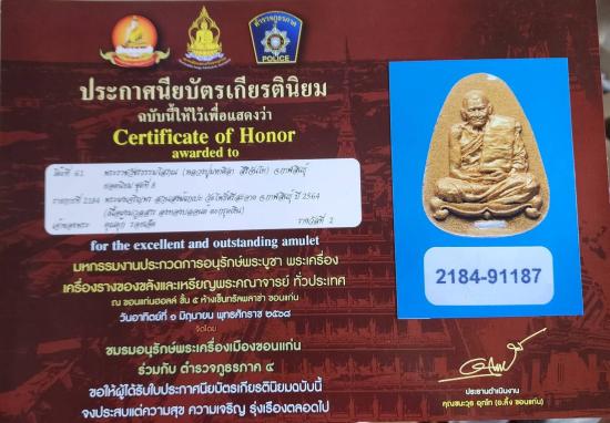 พระผง เจริญพร หลวงปู่ศิลา สิริจันโท เนื้อมวลสารลงบลอนด์ทอง ตะกรุดเงิน แยกชุดกรรมการ เบอร์ 98 ที่2 งาน จ.ขอนแก่น พร้อมใบประกาศ