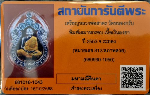 "สภาพสวย"เหรียญเสมา 6 รอบ หลวงพ่อสาคร เนื้อเงินลงยา4 สี ปี 2553 สวยแชมป์ พร้อมกล่องเดิม+บัตรรับรองสภาพสวยครับ