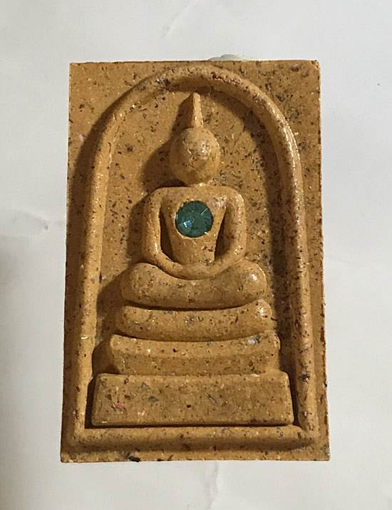 - พระสมเด็จ (หลังยันต์คาถา) ชินบัญชร หลวงปู่ศิลา ออกวัดโพธิ์ศรีสะอาด รุ่นชินบัญชร เนื้อเหลือง อกฝังพลอย กล่องสี่ส้ม ตอกโค๊ต พิเศษ เลข 2520