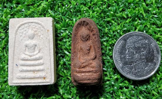ขนาดเล็กเท่าปลายนิ้วก้อย ด้านหน้าเป็นองค์พระปฏิมาประทับนั่งปางมารวิชัย มีฐานอยู่ใต้ที่นั่ง และมีผ้านิสีทนะ (ผ้านั่งปู) รองรับปูไว้บนฐาน ด้านหลังประทับยันต์สาม หรือ ยันต์ใบพัด มีอักษร "ว.ต.ก." ใต้ยันต์ ในองค์ที่ผสมชานหมากน้อยๆ วรรณะจะออกสีขาวอมแดง แต่ส่วนมากเท่าที่เห็นมักจะเป็นสีแดง