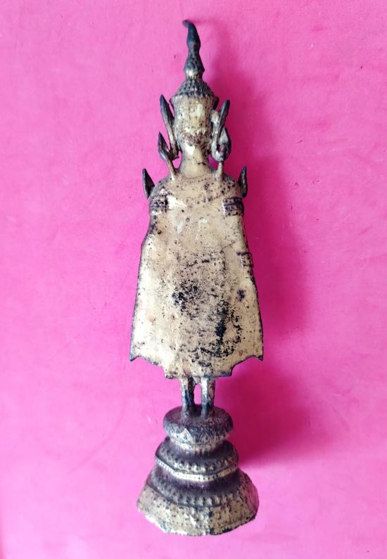 พระพุทธรูปบูชาสมัยรัตน ปลายเกศงอมาข้างหน้าเนื้อสัมฤทธิ์ ขนาดยืนจากฐานถึงปลายเกศ 16 เซนติเมตร ลงลักปิดทองร่องชาด ใต้ฐานดินไทย สภาพรักทองสวยสมบูรณ์ รับประกันตามกฏครับ |