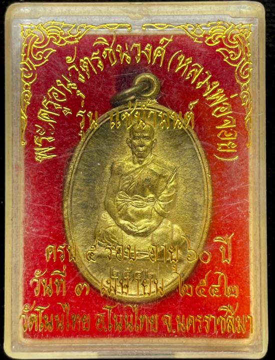 วัดใจ เหรียญหลวงพ่อจอย ชินวโส วัดโนนไทย จ.นครราชสีมา ปี 2542 เนื้อทองเหลือง กล่องเดิม