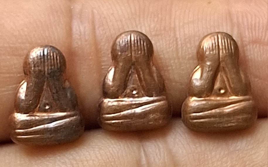 เคาะเดียว3องค์พระปิดตาข้าวตอกแตก เนื้อทองแดง ปี2555 หลังเรียบ ตอกโค้ดตอกหมายเลข สร้าง3499องค์ หลวงพ่อสาคร วัดหนองกรับ จ.ระยอง