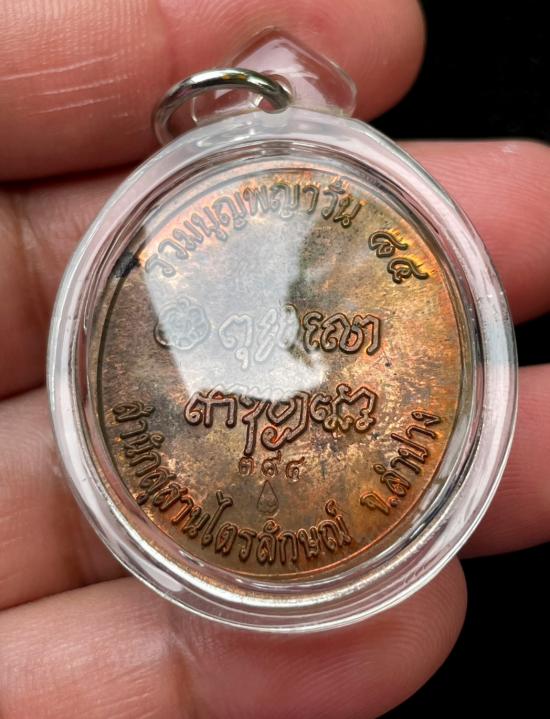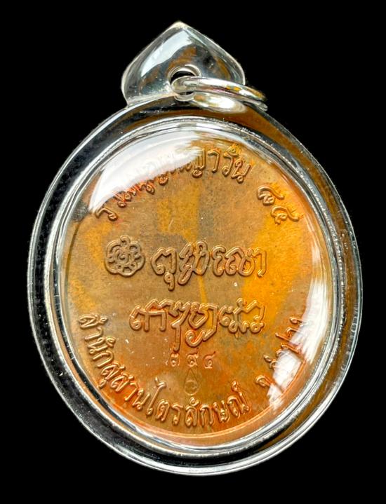 ชื่อพระเครื่อง วัดใจ เหรียญรวมบุญพญาวัน 84 หลวงพ่อเกษม สำนักสุสานไตรลักษณ์ จ.ลำปาง เนื้อทองแดง ปี 2538 ตอกโค้ดนะ + เลข 394 เลี่ยมสวยงาม