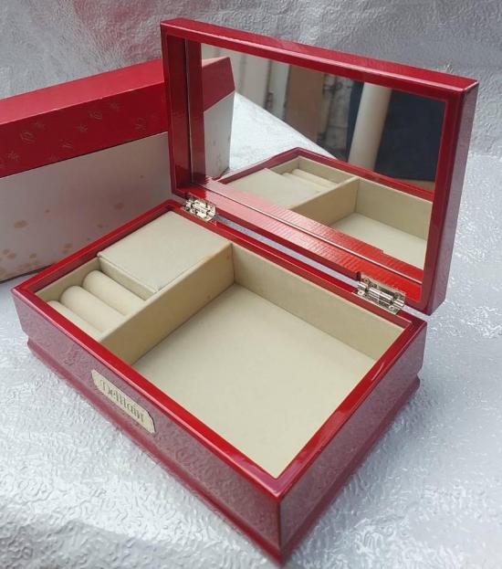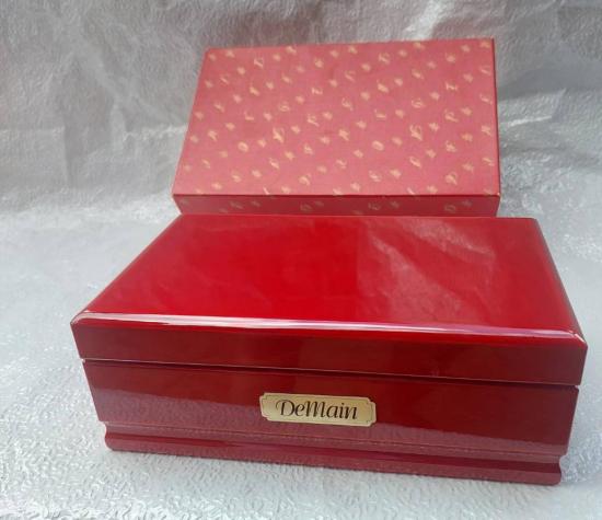 กล่องเครื่องประดับ-อุปกรณ์พระเครื่อง MADE IN JAPAN เป็นเครื่องเขินซูรุกะเป็นงานฝีมือท้องถิ่นดั้งเดิม ของญี่ปุน เป็นกล่องดนตรีด้วย สภาพสวยๆ กล่องเดิม |