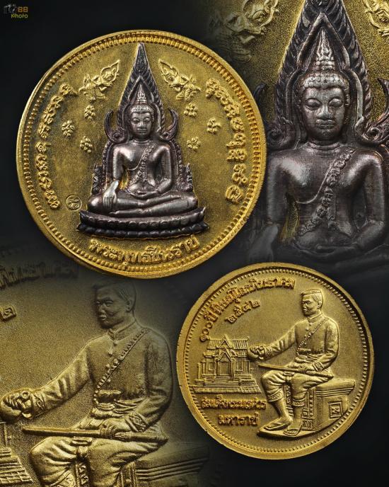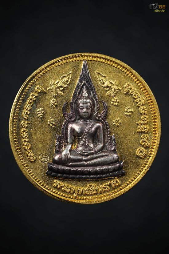 เหรียญพุทธชินราชหลังพระนเรศวรเนื้อ กะไหล่ทอง หน้ากากเงิน รุ่น 100ปี พิษณุโลกพิทยาคม จ.พิษณุโลก