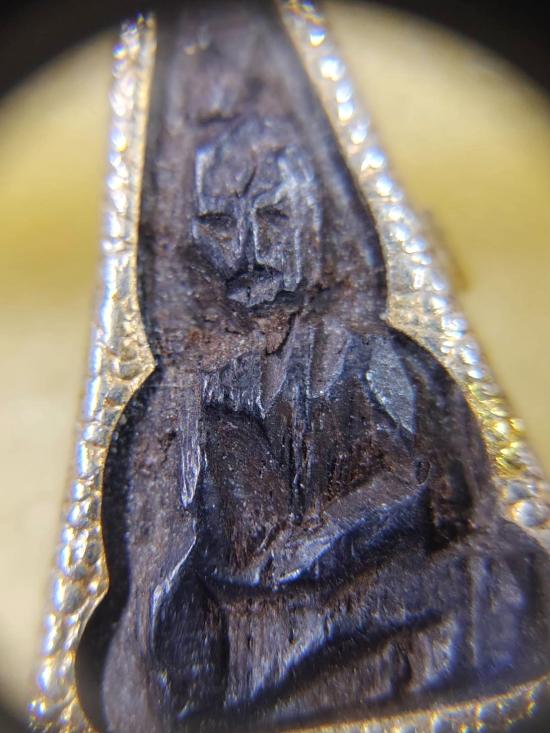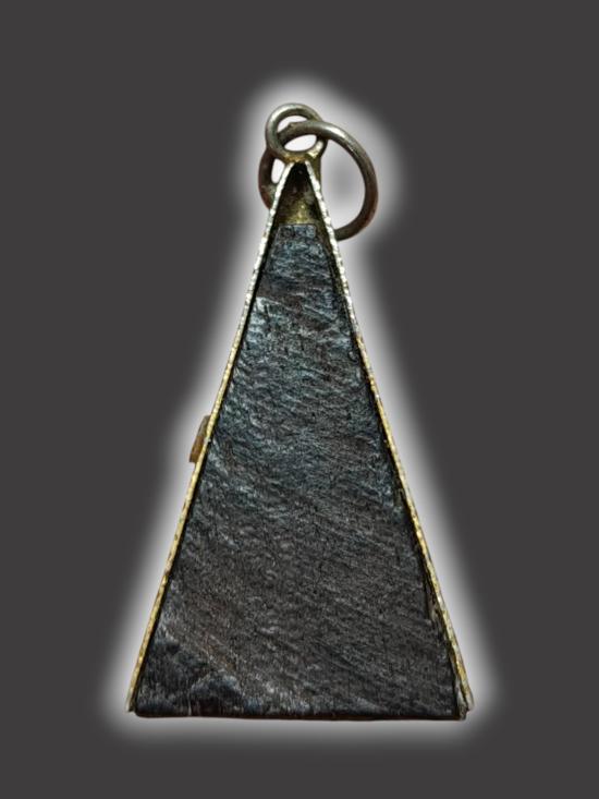 A2089.พระพุทธไม้แกะพิมพ์สามเหลี่ยม ไม่ทราบที่ เลี่ยมเดิม เคาะเดียวเเดง |