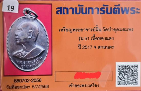 เหรียญพระอาจารย์ฝั้น วัดป่าอุดมสมพร รุ่น51 เนื้อทองแดง ห่วงเดิม ปี2517 จ.สกลนคร + บัตรG-pra สภาพเดิมๆครับ