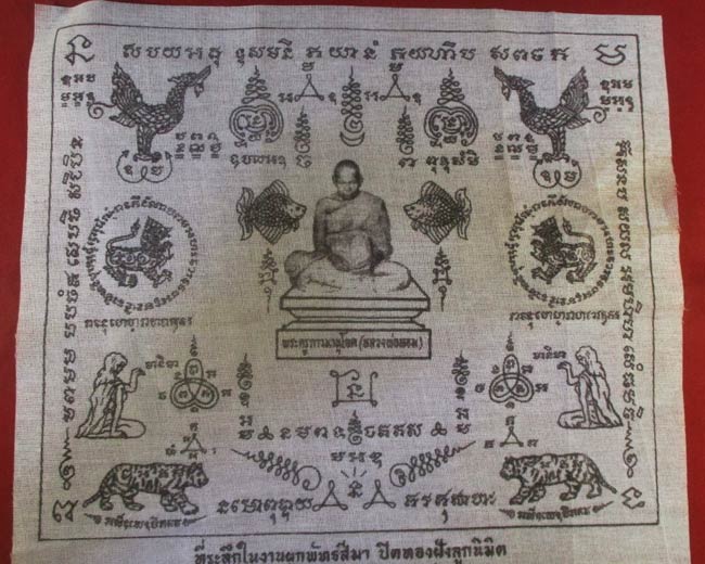 ผ้ายันต์ ที่ระลึกในงานผูกพัทธสีมา ปิดทองฝังลูกนิมิต