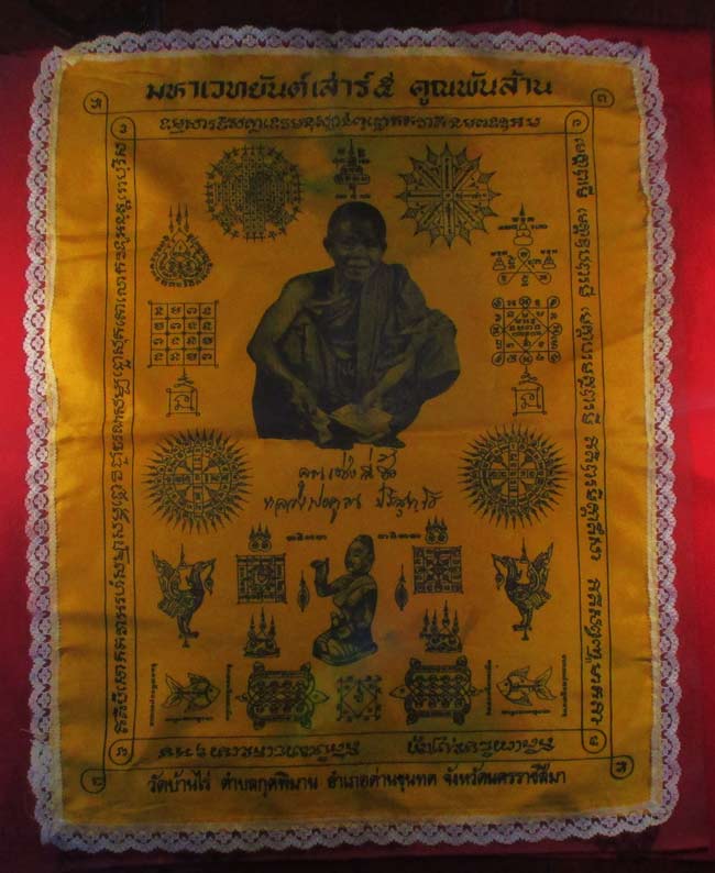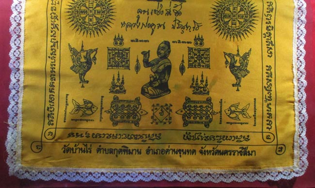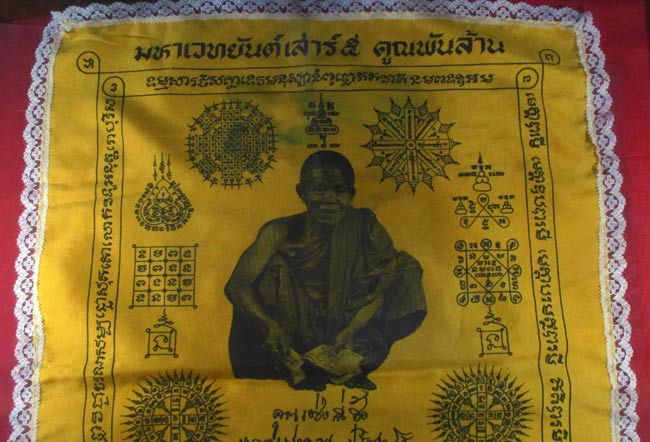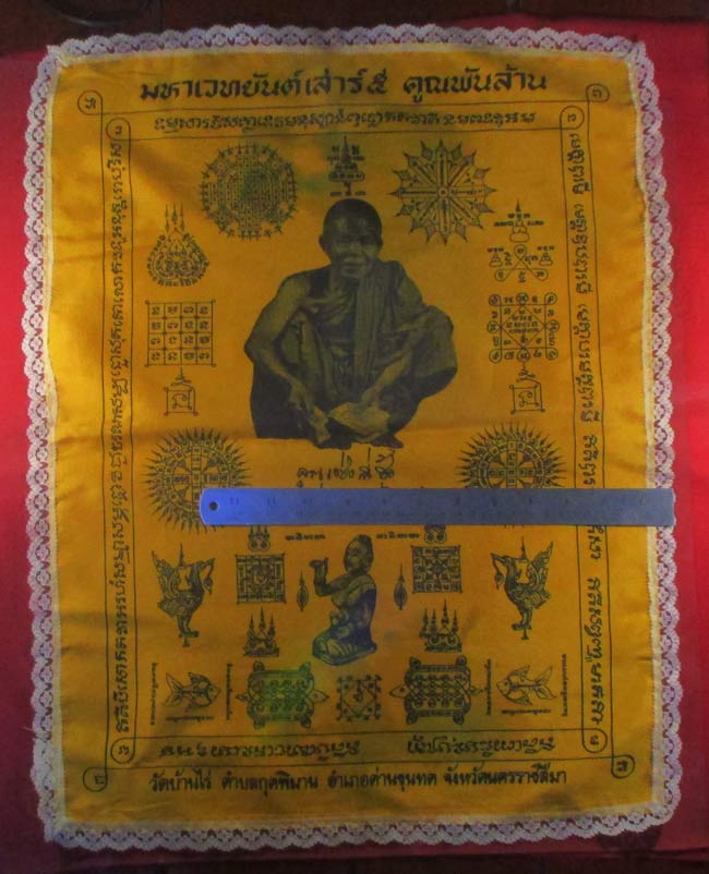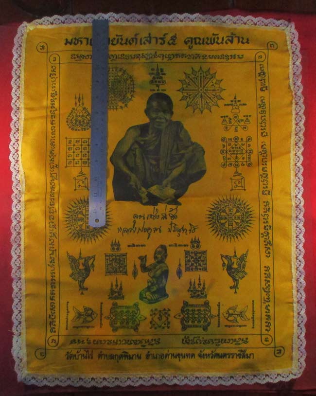 ผ้ายันต์ มหาเวทยันต์เสาร์ ๕ คูณพันล้าน วัดบ้านไร่ ต.กุดพิมาน อ.ด่านขุนทด จ.นครราชสีมา ครับ (พระบ้าน ครับ) |
