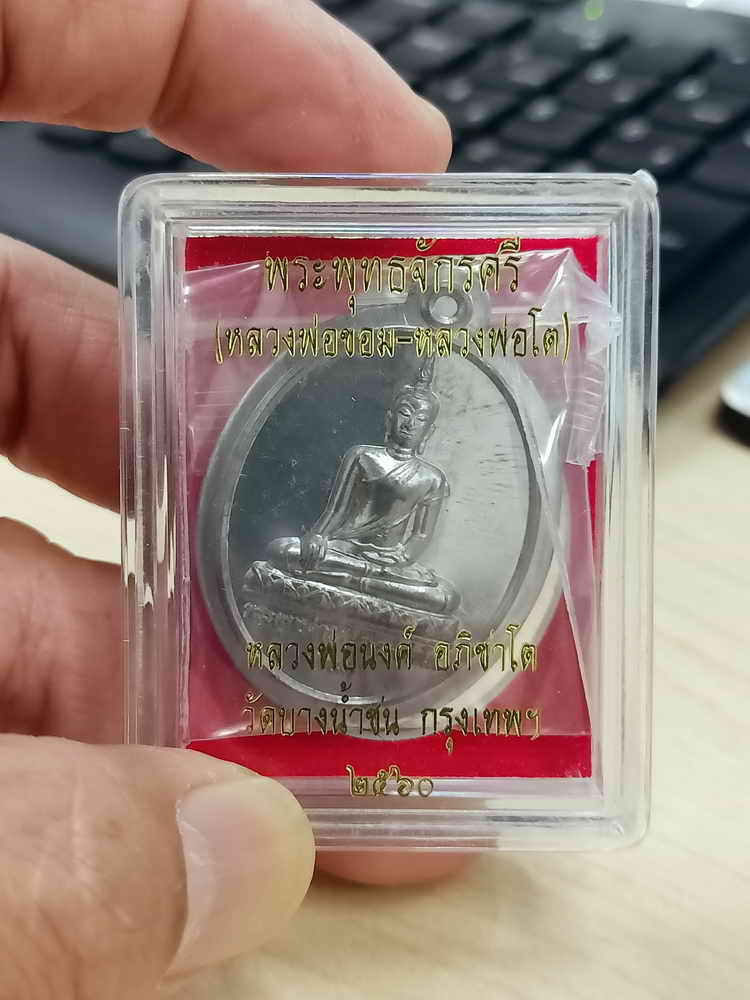 วัดใจ 150 พระพุทธจักรศรี หลวงพ่อขอม-หลวงพ่อโต พระประจำพระอุโบสถ หลวงพ่อนงค์ วัดบางน้ำชน กรุงเทพ 2560 เนื้อตะกั่วหลังเรียบ จารมือ หมายเลข 108 กล่องเดิม