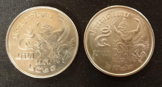 เหรียญ ในหลวงร.9 5 บาท ครุฑเฉียง ปี20 ,ปี 22 unc รวม2เหรียญ น้ำทองสวย วิ้งๆๆ