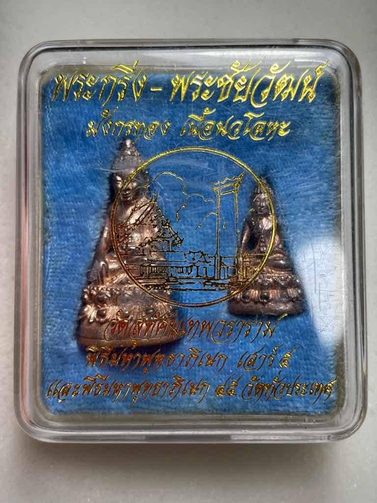 1500.- พระกริ่ง-พระชัยวัฒน์ มังกรทอง วัดสุทัศน์ เนื้อนวะโลหะ ปี 2543 ตอกโค๊ด,เลข กริ่งเขย่าดังดี เสก45วัด หลวงปู่หมุน ร่วมปลุกเสก (พิธี เสาร์ 5 มหาเศรษฐี 8 เม.ย.2543 วัดป่าหนองหล่ม) มาพร้อมกล่องเดิมๆ
