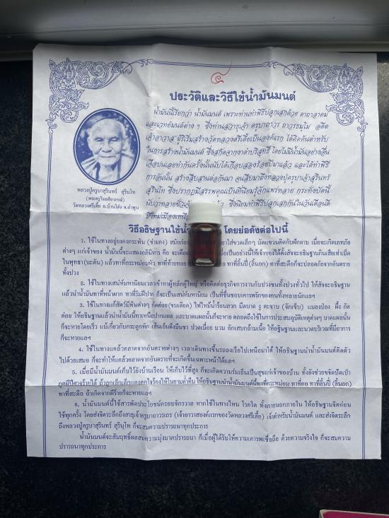 น้ำมันนี้เรียกว่า "น้ำมันมนต์" เพราะท่านทำพิธีปลุกเสกด้วย
