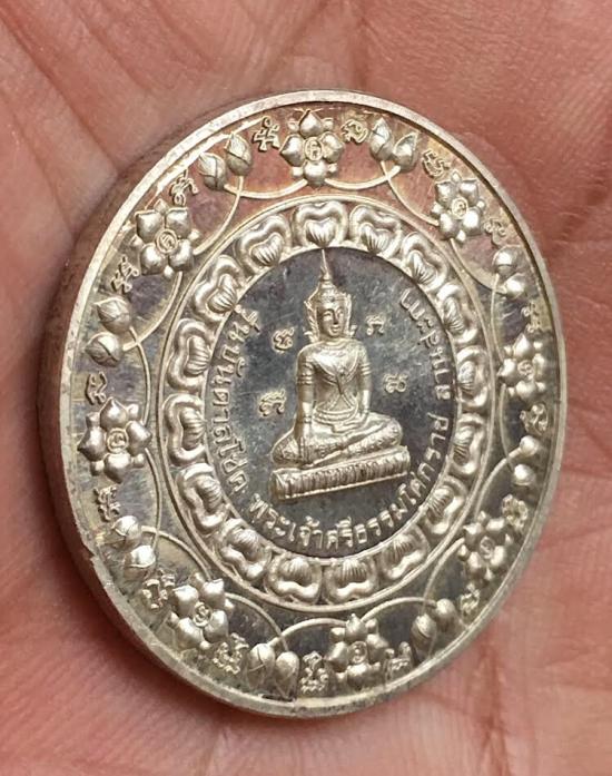 เหรียญพระเจ้าศรีธรรมโศกราช รุ่นบันดาลโชคลานสะกา เนื้อเงิน