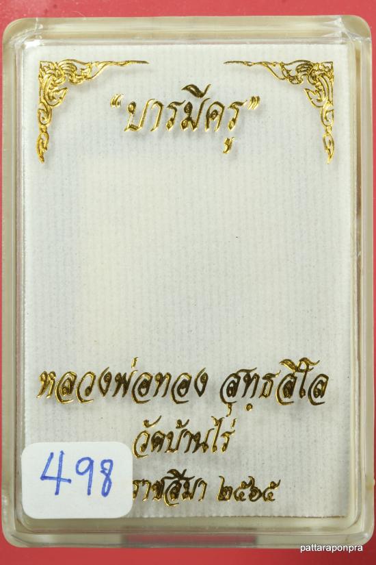 รูปอัดกรอบ หลวงพ่อทอง รุ่นบารมีครู ปี 2565 หลังเนื้อทองแดง หมายเลข 498