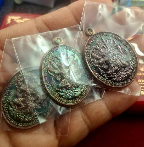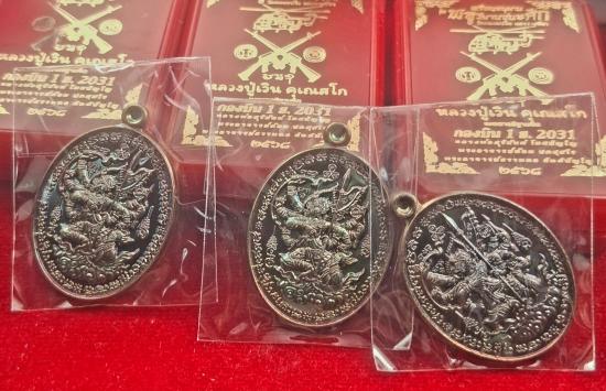 รายละเอียด คาะเดียวแดง เหรียญหนุมาน วัดหนองปรือ จ.นครราชสีมา หลวงปู่วิน หลวงปู่ศิลา ร่วมอธิษฐานจิต กองบิน 1 ฮ 2031 เนื้อทองผิวไฟ+ผิวรุ้ง 3 เหรียญรับพระตามภาพค้ะ