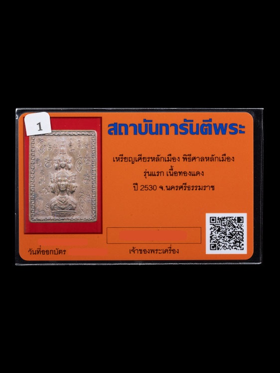 เหรียญเศียรหลักเมือง รุ่นแรก**((แสตมป์องค์พ่อจตุคาม ปี30))**จ.นครศรีธรรมราช เนื้อทองแดง+บัตรรับรองเวปG