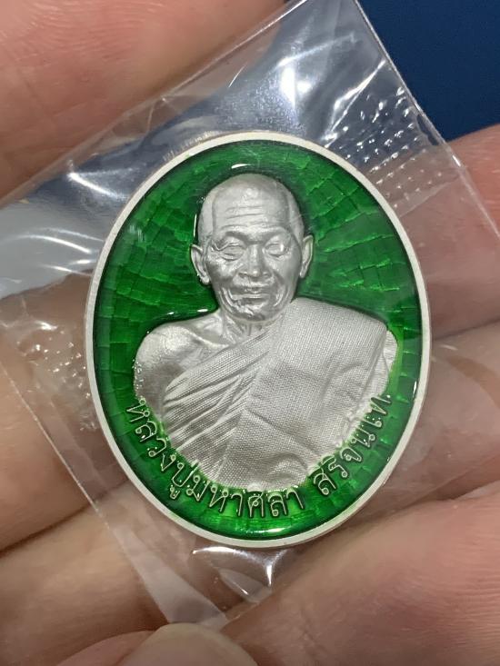 ร้อนแรง หลวงปู่มหาศิลา หลวงปู่ศิลา รุ่นอายุวัฒนมงคล พิมรุ่นแรก2 เนื้อเงินลงยาสีเขียว เบอร์ 924