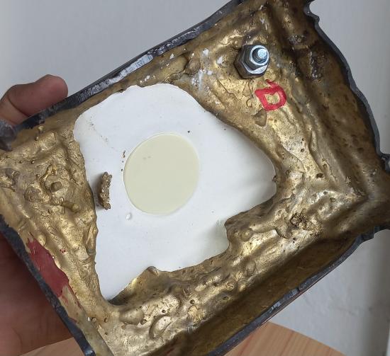 วัดใจ. หลวงปู่มหาศิลา สิริจันโท เนื้อโลหะผสม สองสี หน้าตัก 5 นิ้ว ใต้ฐานอุด เกศา จีวรข้าว ก้นบาตร ผงจินดามณี บูชาที่บ้าน ที่ทำงานหรือร้านค้าดีนักแล