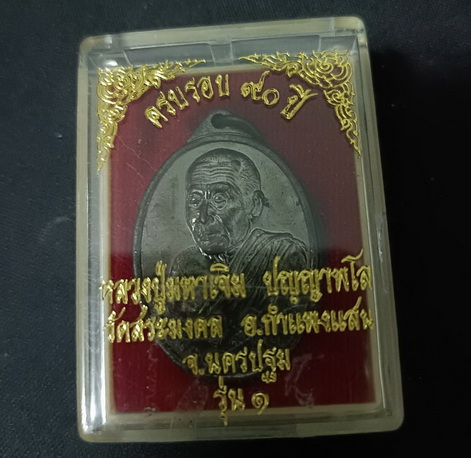 เหรียญรุ่นแรก หลวงปู่มหาเจิม วัดสระมงคล อ.กำแพงแสน จ.นครปฐมพร้อมกล่อง