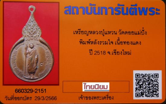 สำหรับเหรียญที่นำลงประมูลนี้เป็นเหรียญหลวงปู่แหวน เหรียญรุ่นนี้สร้างปี พ.ศ.2518 โดยข้าราชบริพาร ทหาร ตำรวจ และเจ้าหน้าที่ผู้เกี่ยวข้องทุกฝ่ายที่ได้มีจิตศรัทธาบริจาคทรัพย์จำนวน 107,999 บาท ทูลเกล้าถวายสมเด็จพระนางเจ้าสิริกิติ์ พระบรมราชินีนาถ เพื่อเป็นทุนในการก่อสร้างพระอุโบสถวัดเจดีย์สถาน