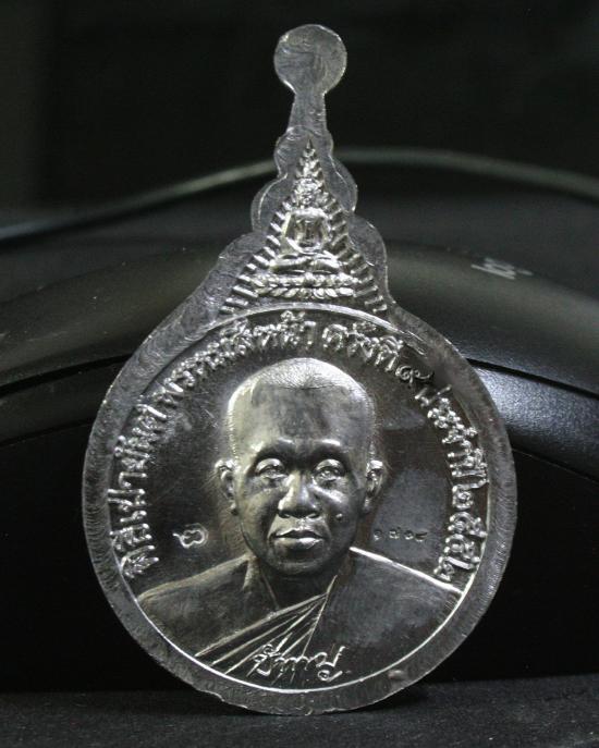 ด้านหลัง เป็นรูปหลวงพ่อครึ่งองค์มีลายเซ็นคำว่า "ชำนาญ" เป็นสื่อถึงหลวงพ่อกับลูกศิษย์โดยตรง ด้านบนเป็นพระพุทธรูป ซึ่งแฝงคำสอนของหลวงพ่อว่า "ทำอะไรก็อย่าทิ้งพระรัตนตรัย นะ" เหรียญนี้ดูโดยรวมจะเห็นเป็นทรงคล้ายหยดน้ำ ให้ความหมายว่า ตราบใดที่ฝนยังหล่นบนพื้นดินอยู่ตราบนั้นเราก็จะได้รับความชุ่มชื่นและร่มเย็นเป็นสุขตลอดไป