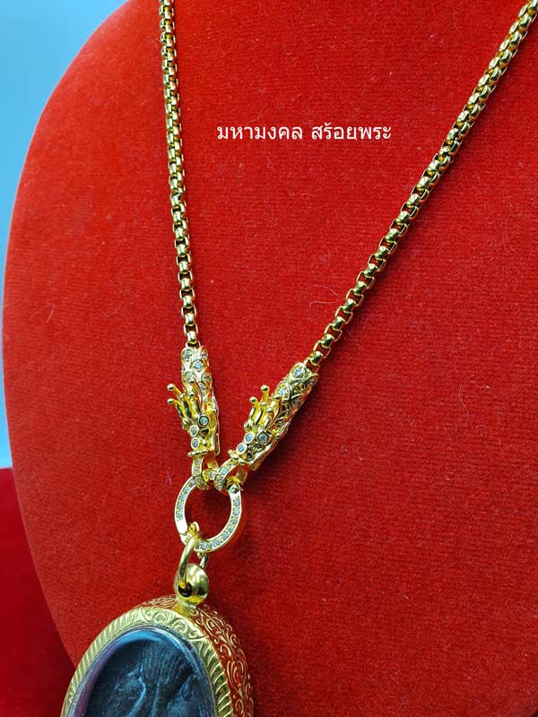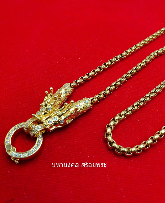 สร้อยสแตนเลส งานทองเลเซอร์แท้ แต่งด้วยหัวมังกร ยาว 26 นิ้วครับ