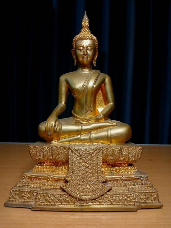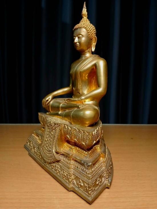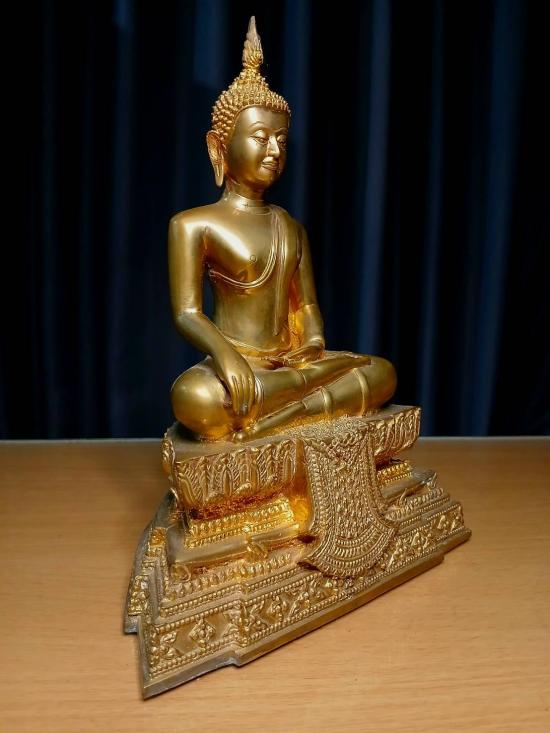 พระบูชาหลวงพ่อวัดบางน้ำผึ้งใน พระประแดง สมุทรปราการ หน้าตัก 5 นิ้ว เนื้อทองเหลืองขัดเงา หล่อหนา รายละเอียดชัดเจน