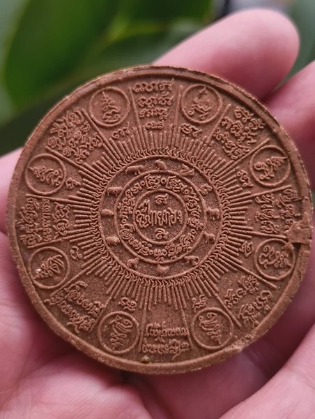 ปฐมอรหันต์สุวรรณภูมิ 2547 เนื้อว่านไม้มงคล ธรรมจักร ไม่มีองค์พระ ขนาด5ซ.ม.