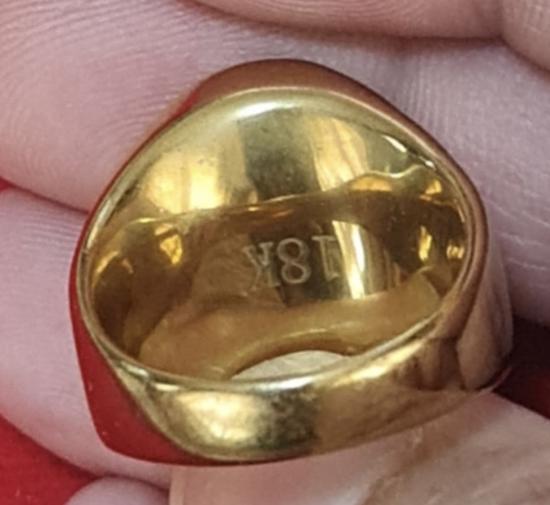 แหวนทองตอกสลักใต้ทอง18k ขนาดใหญ่พอควร ตามประสบการณ์ น่าจะเคลือบ ผมเอามาจากในเว๊ปเรานี่หล่ะ ขออนุญาตใช้ภาพเก่า ไม่ขอบผ่านนะครับเอาคนที่รู้และพร้อมนะครับ |