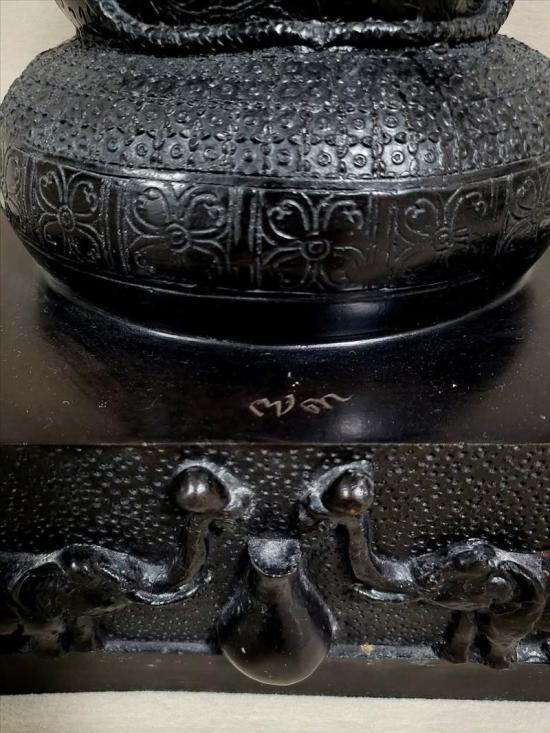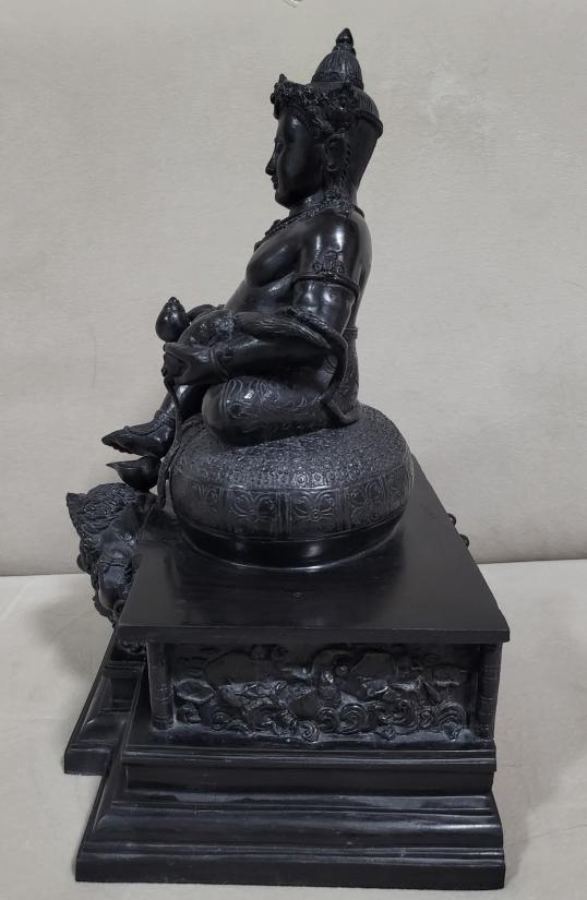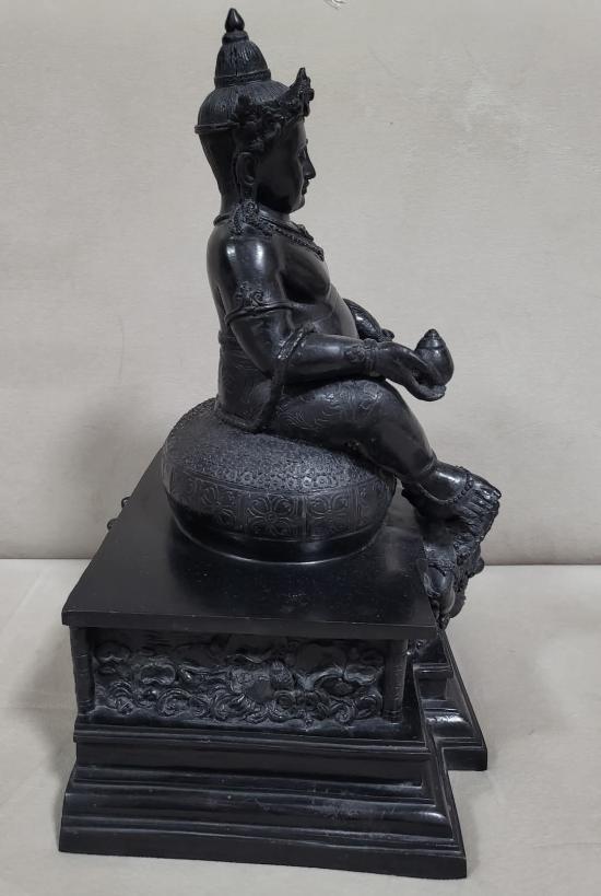 ท้าวกุเวรมหาราช (พระธนบดีศรีธรรมราช) ผู้ประทานโชคลาภและความมั่งคั่ง แห่งอาณาจักรทะเลใต้ รุ่นเจริญโภคทรัพย์ วัดชะเมา ปี 2548 เนื้อโลหะ รมดำ หมายเลข 79 ฐาน10นิ้ว หายากมาก