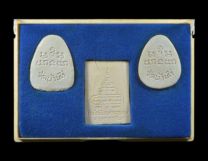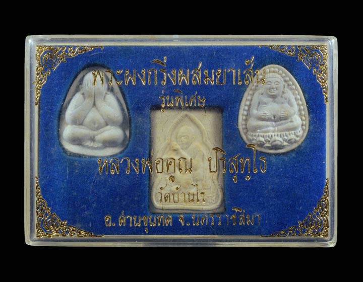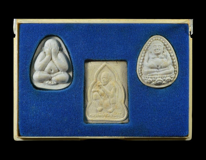 พระผงกริ่งผสมยาสูบ ( ชุด 3 องค์ , สังกัจจายน์,ปิดตา,รูปเหมื อ นนั่งยอง ) รุ่น พิเศษ พ.ศ.2535 ( กล่องเดิม , กริ่งดัง )