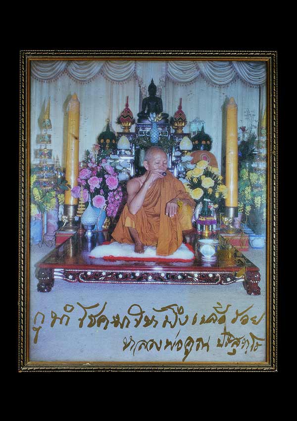 รูปภาพโปสเตอร์ ( งานพิมพ์ 15X12 นิ้ว ) กูนำโชคมาให้มึงแล้วรวย ลายเซ็นหลวงพ่อคูณ ตัวหนังสือถอดจากลายมือหลวงพ่อคูณ สกรีนด้วยหมึกทอง