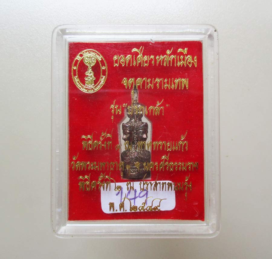 ยอดเศียรหลักเมืองจตุคามรามเทพ รุ่น ปรกเกล้า พ.ศ.2549 เนื้อนวะโลหะ ยอดเศียรแก่เนื้อเงิน พร้อมกล่องเดิม