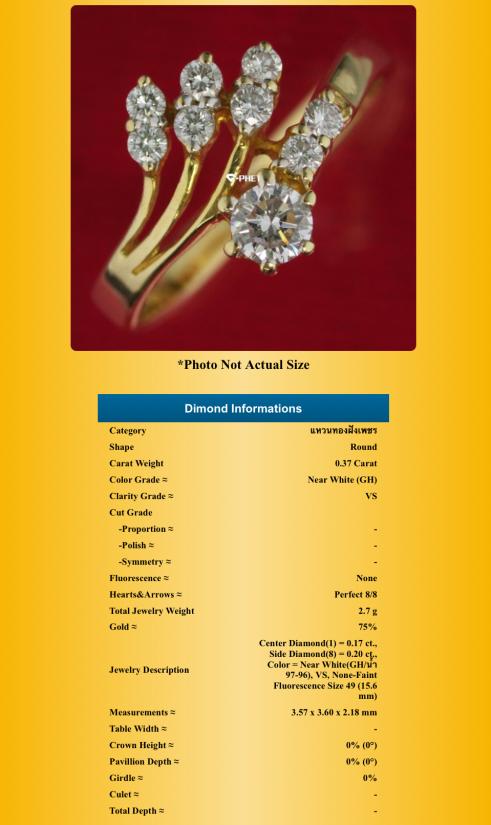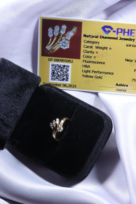 แหวนทองฝังเพชรแท้ 0.37 กะรัต น้ำหนักรวม 2.7 กรัม เบอร์ 49 พร้อมบัตรรับรอง G-Phet