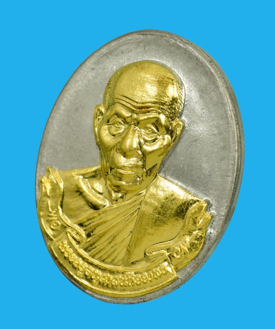 เนื้อดีบุก หน้ากากทองคำแท้ เหรียญเศรษฐีเหนือดวง หลวงปู่เขียว วัดห้วยเงาะปัตตานี ปี ๒๕๕๙ รุ่นบูรณะอุโบสภ วัดไทรใต้ นครสรรค์ ตอนหลวงปู่ไปจำพรรษา นาน ๑ ปี