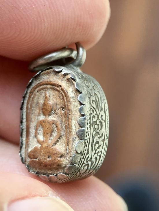 พระพิมพ์เม็ดบัว หลวงพ่อขอม วัดไผ่โรงวัว จ.สุพรรณบุรี ปี 05 จับขอบเงินเก่า |