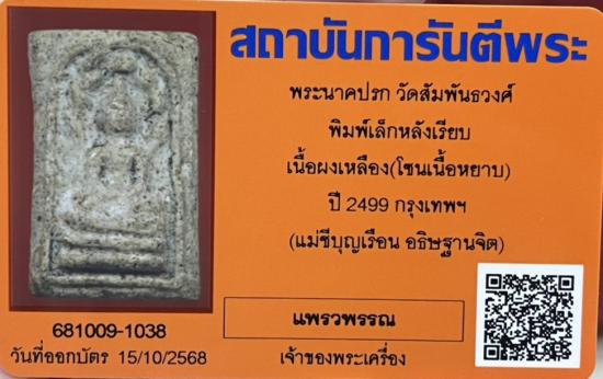 พระสมเด็จมงคลมหาลาภพิมพ์เล็กคะแนนเนื้อเหลืองพรหมโสฬรปี2499.คุณแม่บุญเรือน |