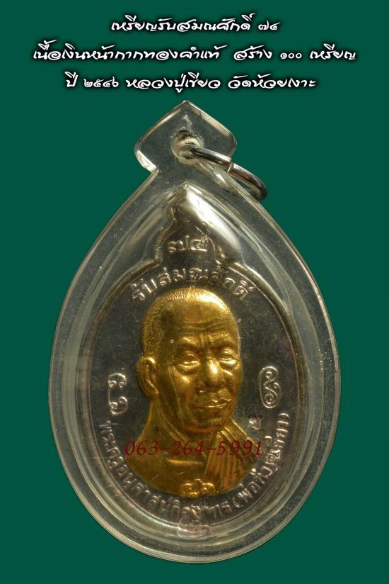 ๑ ใน ๕๐ เหรียญ เนื้อเงินหน้ากากทองคำแท้ เหรียญรับสมณศักด์ ปี ๒๕๔๖ พ่อท่านเขียว